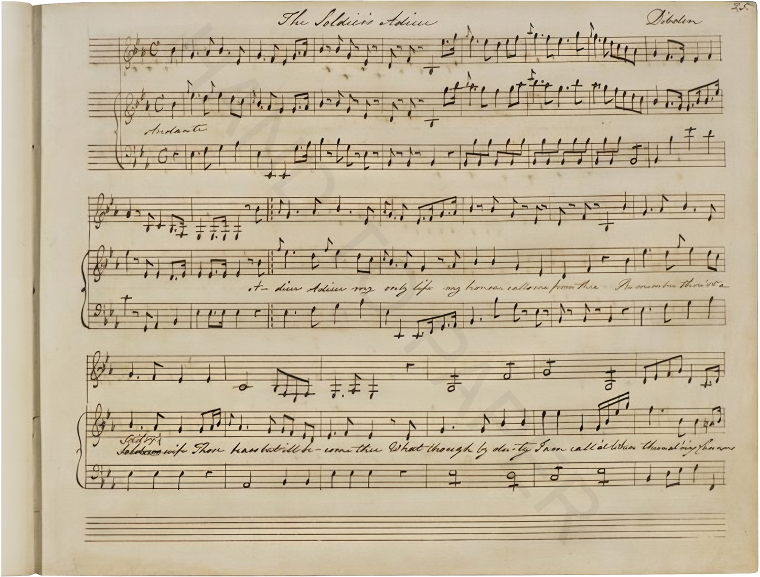 “The Soldier’s Adieu” by Dibdin, CHWJA 19/3.32 - Manuscript of vocal music, copied c.1790-c.1805